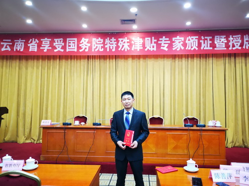 4月12日,在云南省2018年獲國務(wù)院政府特殊津貼專家頒證暨新設(shè)立專家基層科研工作站和省級博士后站授牌活動會上,老廠分公司竹葉山坑一工區(qū)采礦一隊隊長、高級技師楊勇榮獲2018年國務(wù)院政府特殊津貼。云南省人社廳黨組副書記、副廳長和江峰、副廳長邢渭東、省委組織部人才工作處處長肖峰出席活動并為2018年榮獲享受國務(wù)院政府特殊津貼的48位各行各業(yè)專家人才現(xiàn)場頒發(fā)證書。