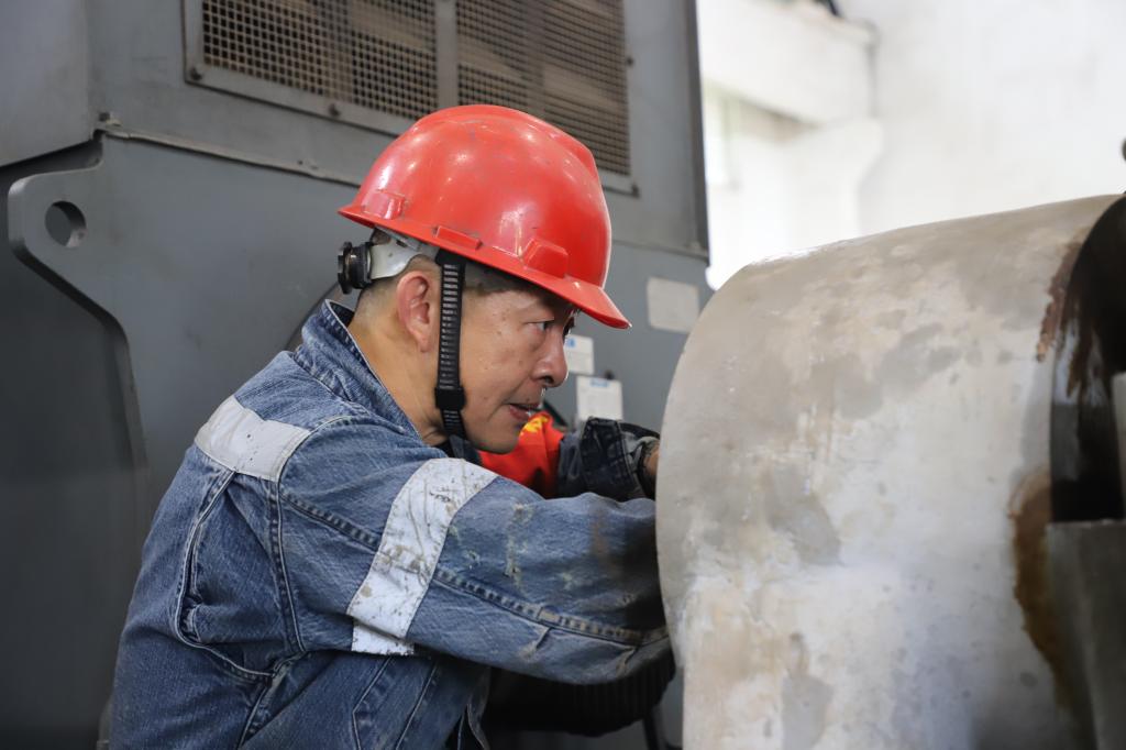 李駿師傅在冶金爐窯修理的崗位上一干就是三十幾年?;貞涀约旱那啻簳r(shí)光,李駿說,當(dāng)時(shí)同齡的黨員非常少,黨組織生活大都在晚上七點(diǎn)到九點(diǎn)這個(gè)階段,用業(yè)余時(shí)間開展黨內(nèi)學(xué)習(xí)。身邊的黨員同志,包括父親在內(nèi),個(gè)個(gè)能吃苦,干活任勞任怨,那種精神一直感染著他。對他來說,入黨的意義,既是年輕人的積極進(jìn)取,也是父輩榜樣力量的指引,更是艱苦奮斗的精神傳承。李駿是銅業(yè)分公司成立后的第一批員工,承擔(dān)著熔煉四座爐子的修理和八臺(tái)風(fēng)機(jī)的維護(hù)。從英格索蘭風(fēng)機(jī)到GD風(fēng)機(jī),他把每臺(tái)風(fēng)機(jī)的習(xí)性摸得透透的?!皺z修一次,好好維護(hù),能保證爐子和全場各個(gè)用風(fēng)的系統(tǒng)順順利利開一年?!卑扬L(fēng)機(jī)維護(hù)好并不是件容易事,李駿師傅輕松的話語里,透出的是責(zé)任和擔(dān)當(dāng)。